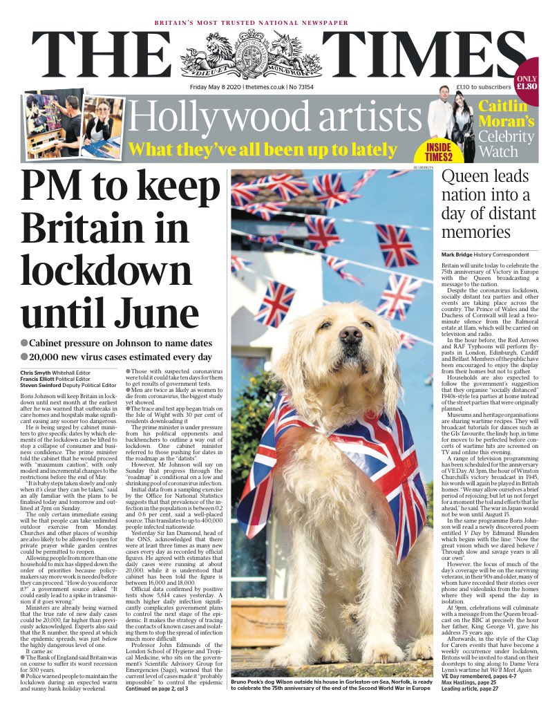 | TIMES:PM to keep Britain in lockdown until June #TomorrowsPapersToday Posted: 07 May 2020 02:05 PM PDT This posting includes an audio/video/photo media file: Download Now |