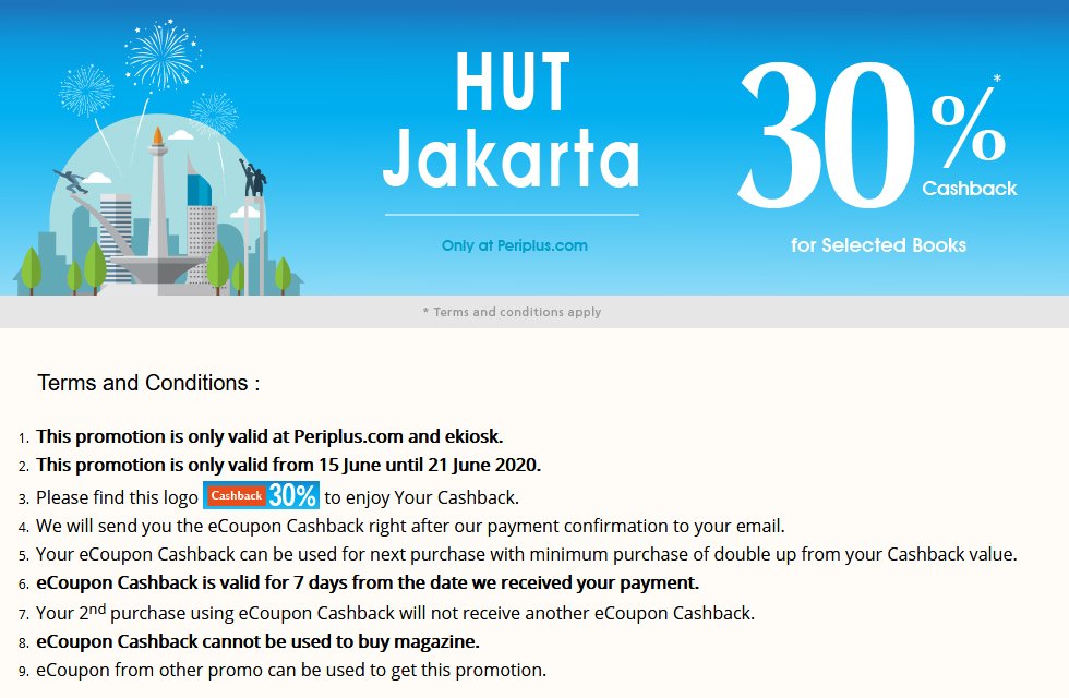 - Get 30% Cashback for HUT Jakarta (15-21 June 2020) - mailchi.mp/periplus.com/h… #HUTJakarta #Periplus #Indonesia