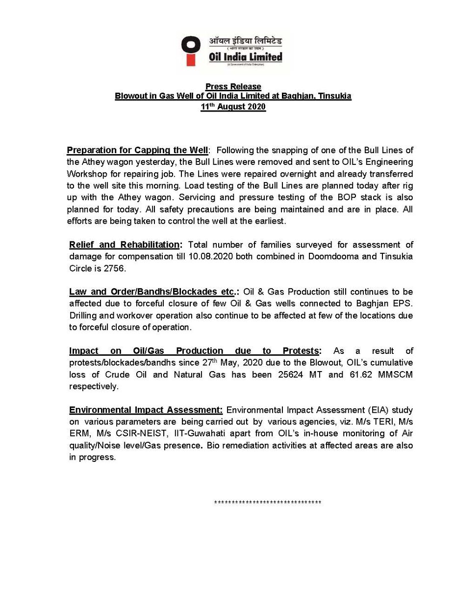 | Update on blowout in Gas Well of Oil India Limited at Baghjan, Tinsukia District,... Posted: 11 Aug 2020 12:51 AM PDT Update on blowout in Gas Well of Oil India Limited at Baghjan, Tinsukia District, Assam (11.08.2020). This posting includes an audio/video/photo media file: Download Now |