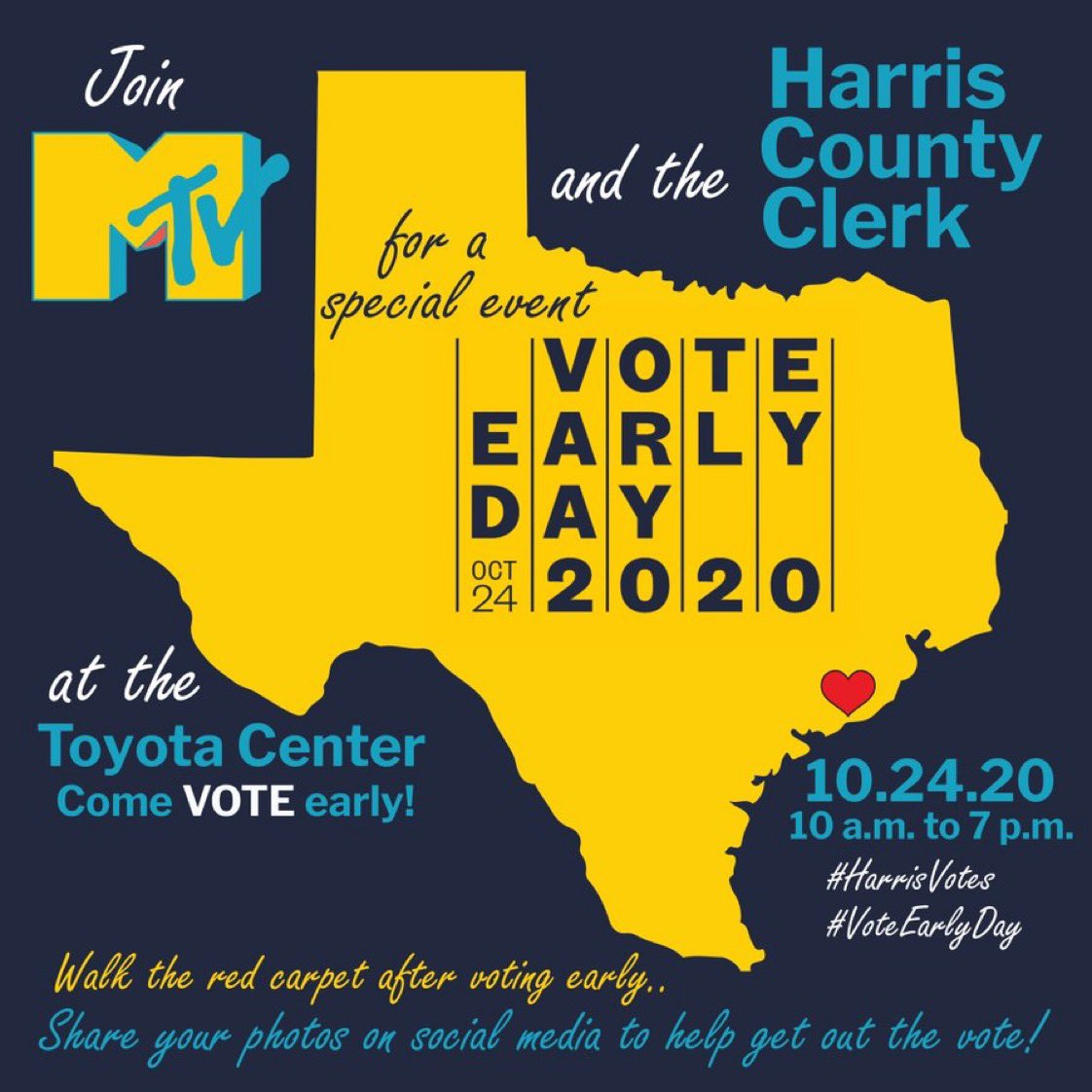 - Tomorrow 10/24, @MTV is rolling out the red carpet at Toyota Center for #VoteEarlyDay...