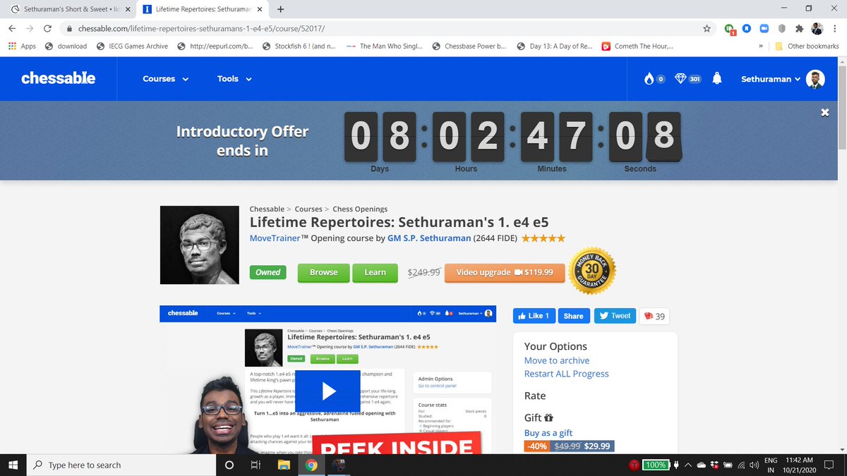 | The Introductory offer ends in 8 days. Grab it and cruise through the aggressive... Posted: 20 Oct 2020 11:17 PM PDT RT @sethuramanchess The Introductory offer ends in 8 days. Grab it and cruise through the aggressive and adrenaline fueled Life-time Repertoire after 1 e4 e5 ( The Sethuraman way :) @chessable This posting includes an audio/video/photo media file: Download Now |