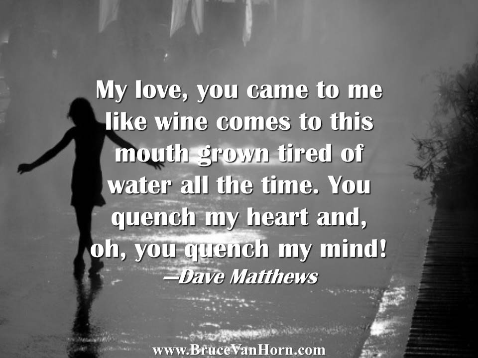 | My love, you came to me like wine comes to this mouth grown tired... Posted: 07 Nov 2020 06:00 PM PST My love, you came to me like wine comes to this mouth grown tired of water all the time. - Dave Matthews This posting includes an audio/video/photo media file: Download Now |
