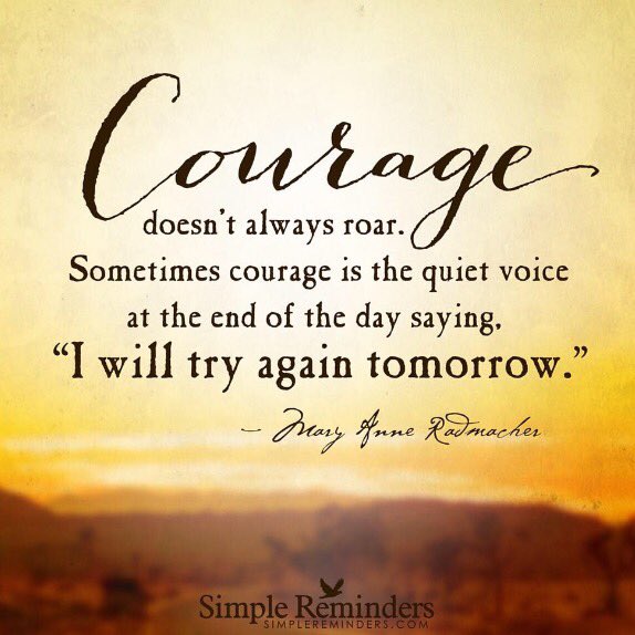 - Courage doesn't always roar. Sometimes it is the quiet voice saying "I will try...