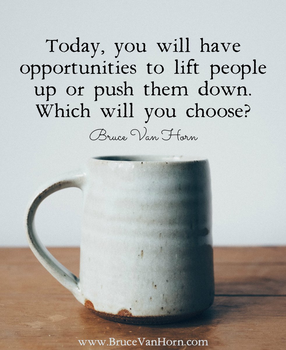 - Today, you will have opportunities to lift people up or push them down. Which...