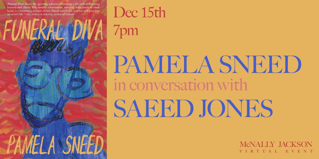 | 1 week from today - Pamela Sneed and Saeed Jones (@theferocity) in conversation about... Posted: 08 Dec 2020 10:27 AM PST 1 week from today - Pamela Sneed and Saeed Jones (@theferocity) in conversation about Pamela's new book, FUNERAL DIVA. Hosted by our friends at @mcnallyjackson. RSVP: mcnallyjackson.com/event/funeral-… This posting includes an audio/video/photo media file: Download Now |