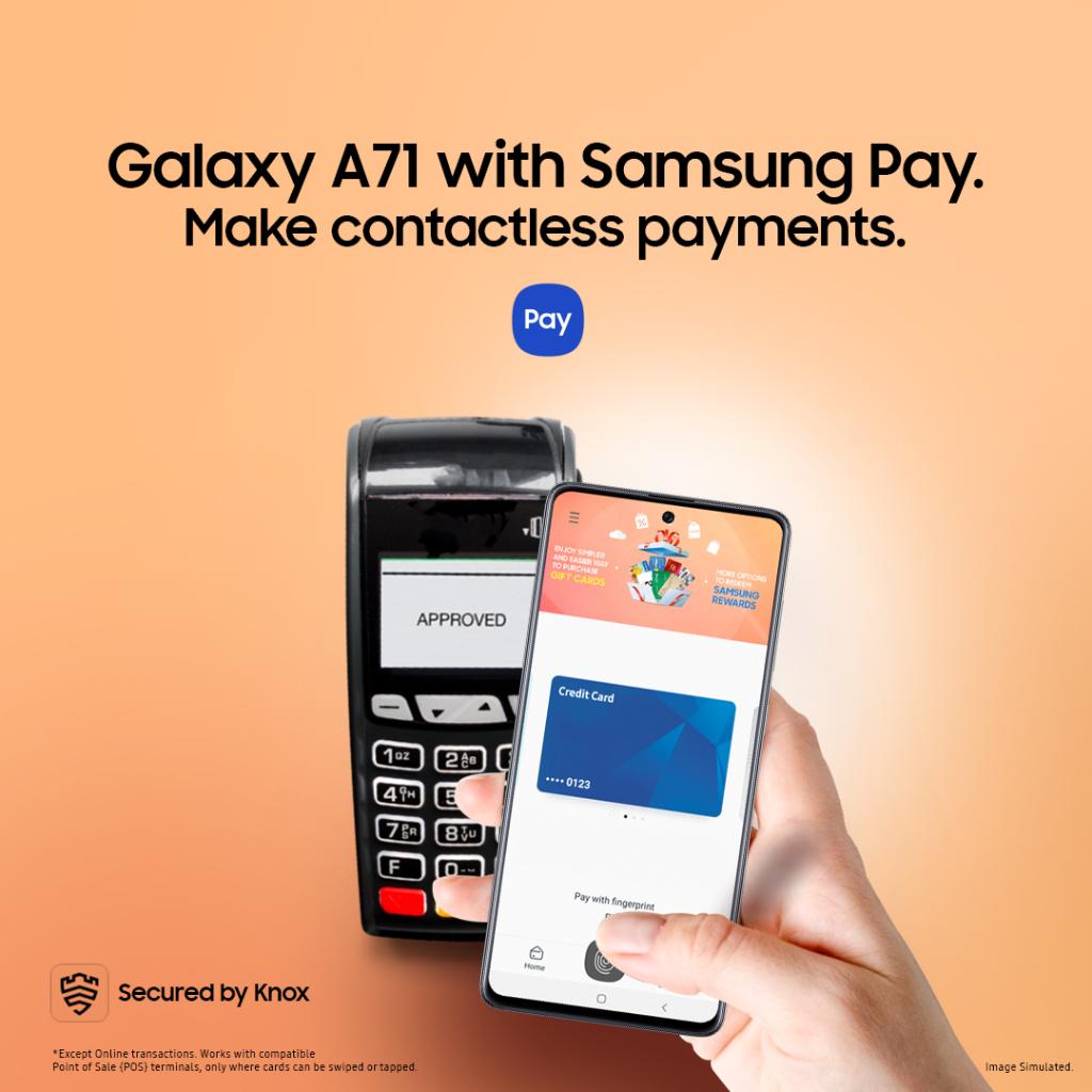 - Samsung Pay on the #GalaxyA71 lets you make contactless payments. Own now at EMI...