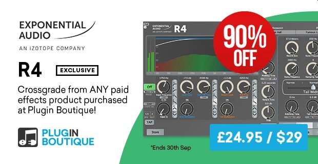 - Exponential Audio R4 Crossgrade Sale (Exclusive) - 90% Off ๐ ๐ pluginboutique.com/product/2-Effe… ๐ ๐...