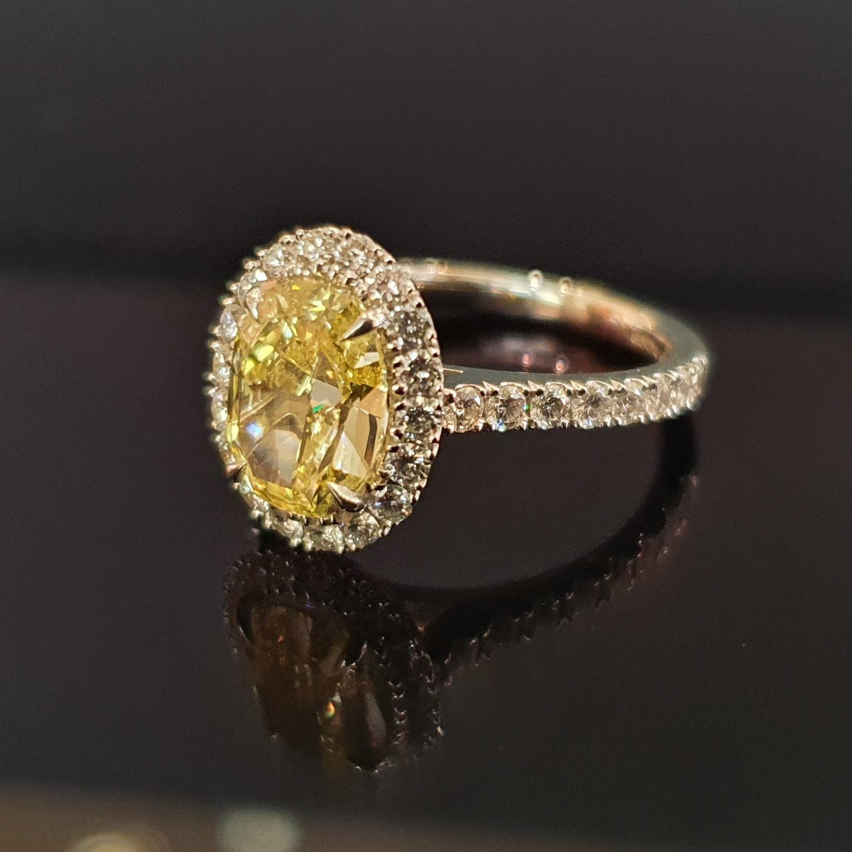 - Taking another look at our magnificent yellow diamond halo ring. ✨✨✨ #martinandco #diamond #engagementring