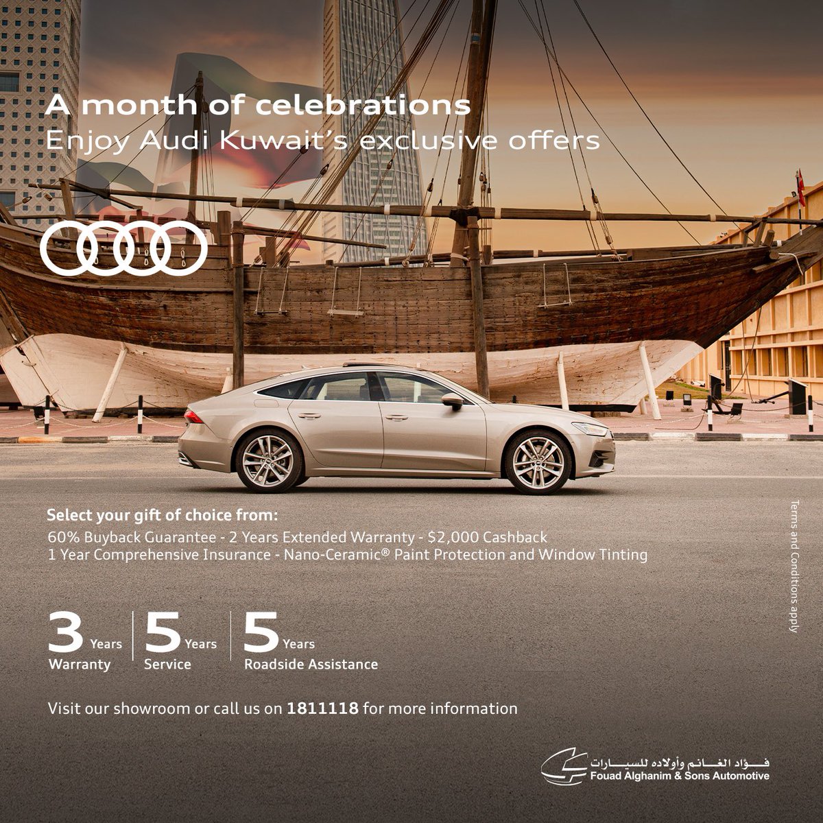 - إحتفل مع عروض #AudiKuwait *3 سنوات كفالة *5 سنوات خدمة *5 سنوات مساعدة على...