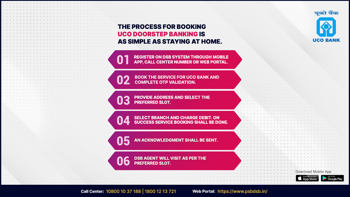- Follow few steps and book UCO Doorstep Banking services. Making banking easier and safer....