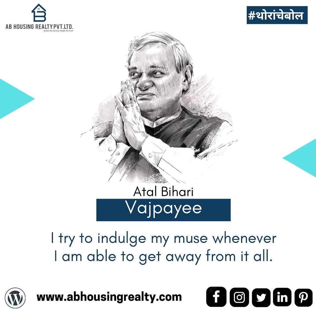 | I try to indulge my muse whenever I am able to get away from... Posted: 24 Jun 2021 12:42 AM PDT I try to indulge my muse whenever I am able to get away from it all. - Atal Bihari Vajpayee 🙏🙌 #abhousingrealtypvtltd #greattalk #thoughtoftheday #greatthought #thoranchebol This posting includes an audio/video/photo media file: Download Now |