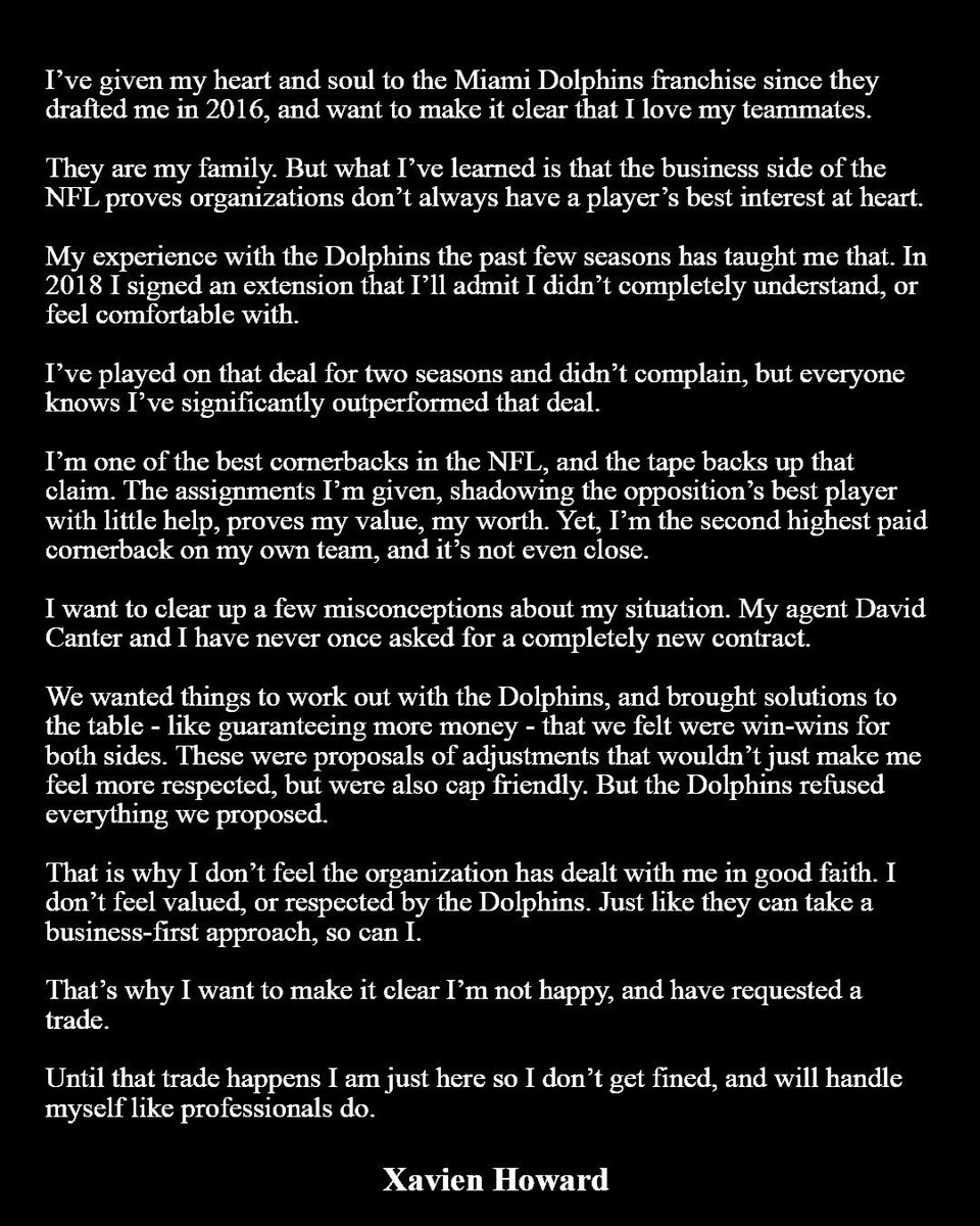 | Posted: 27 Jul 2021 08:16 PM PDT RT @northidaho49ers Cap isn't an issue. PFF : Xavien Howard releases a statement requesting a trade from the Miami Dolphins. |