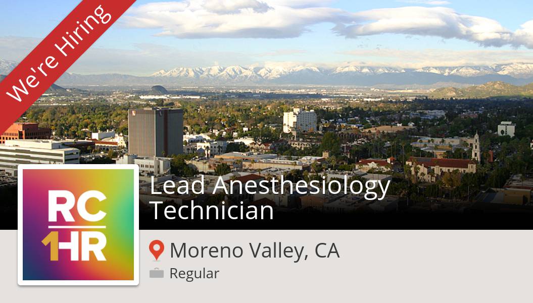 - #CountyofRiverside is hiring a #Lead Anesthesiology #Technician, apply now! (#MorenoValleyCA) #job workfor.us/riversidecount… #RivCo1HR