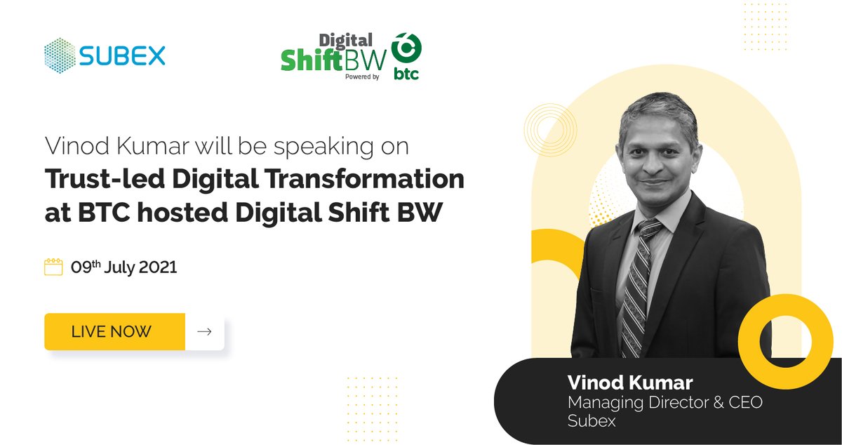 - Vinod Kumar(@VinodKPad), Managing Director and CEO, #Subex is now live at #DigitalShiftBW. Join now...