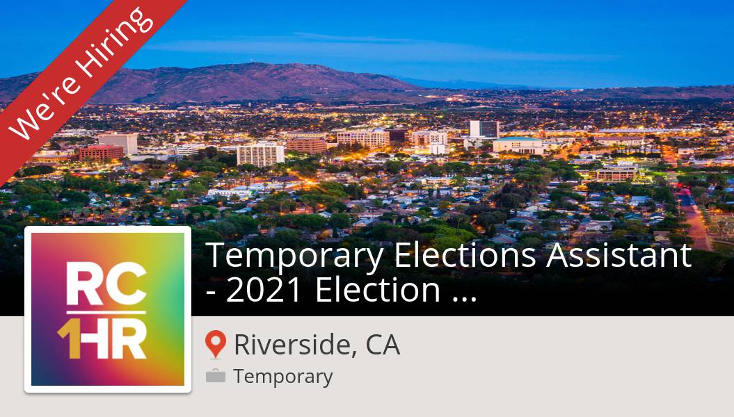 - #CountyofRiverside is hiring a Temporary Elections #Assistant - 2021 Election $20/#hr in #RiversideCA, apply...