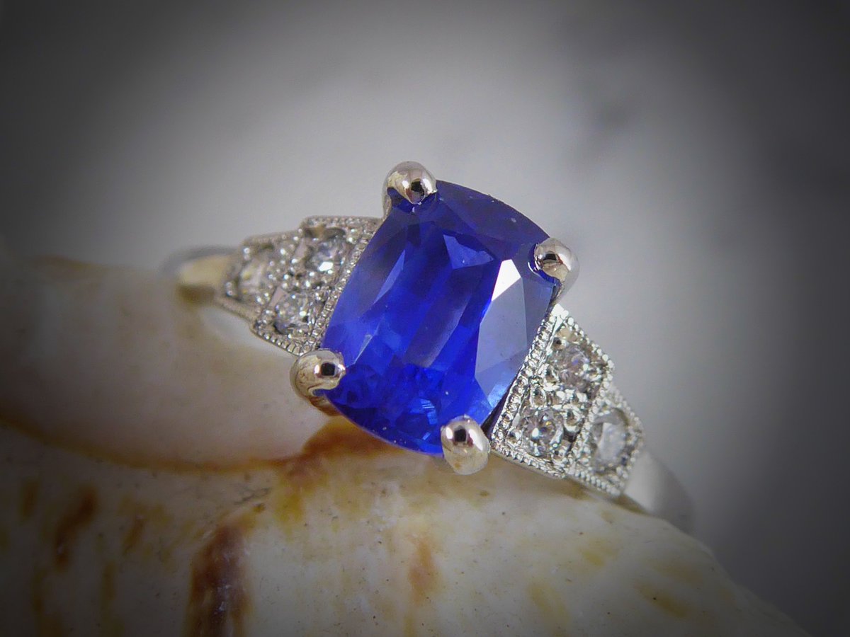- Vintage style cushion shaped sapphire with stepped, diamond set shoulders. Buy #Online or #instore...
