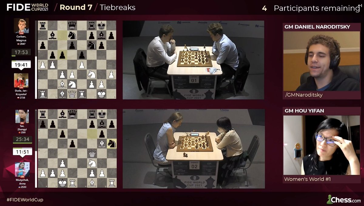 - Besides Hou Yifan, @GmNaroditsky is now also flanked by @vishy64theking for this tiebreak day!...