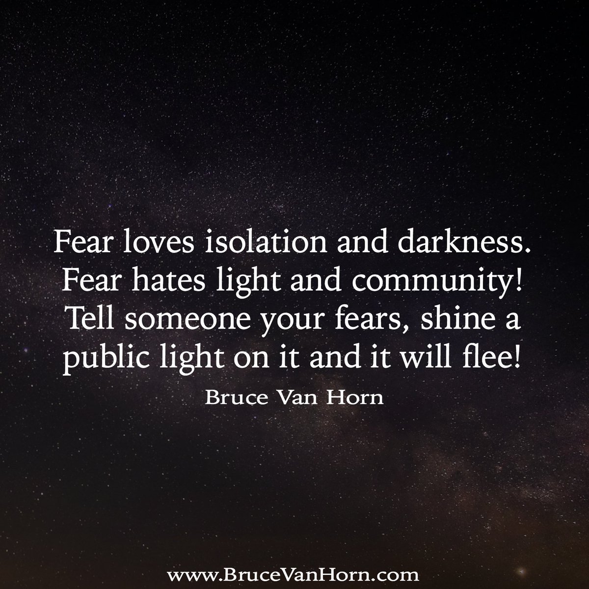 - Fear loves isolation and darkness. Fear hates light and community! Tell someone your fears,...