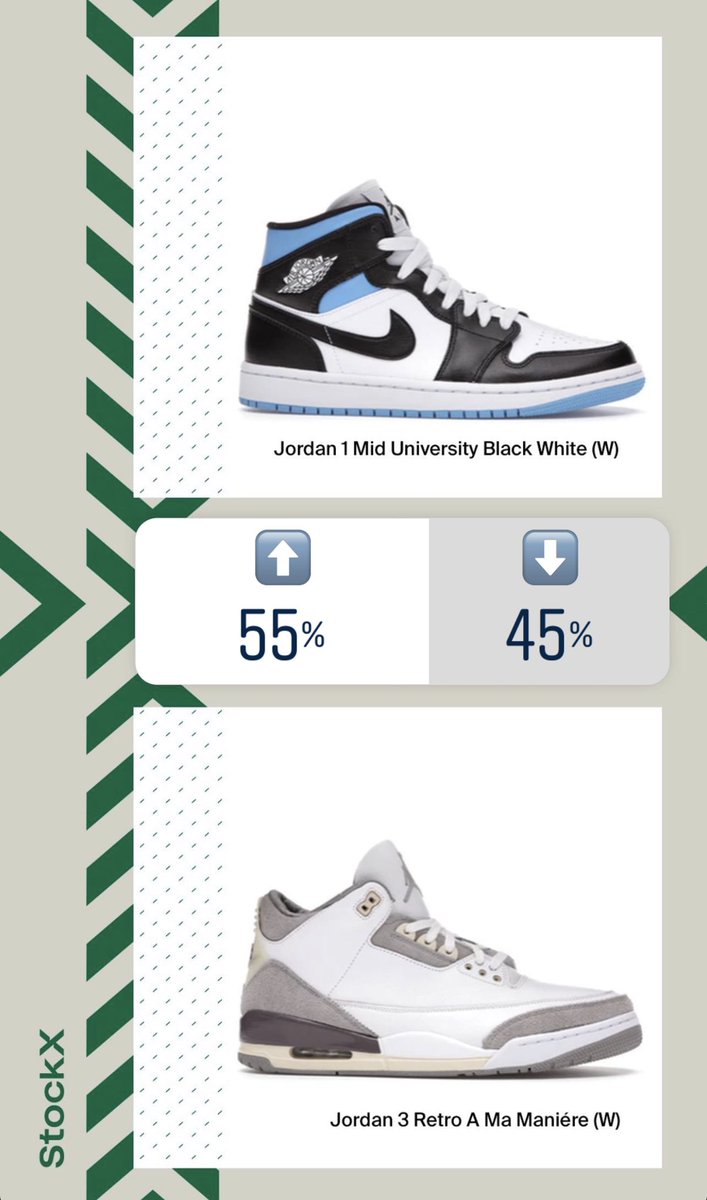 | Stock X ran a poll for the Jordan 1 Mid University Black vs. the... Posted: 22 Sep 2021 12:25 PM PDT Stock X ran a poll for the Jordan 1 Mid University Black vs. the A Ma Maniére Air Jordan 3. Mids taking over!?!? 👀 This posting includes an audio/video/photo media file: Download Now |