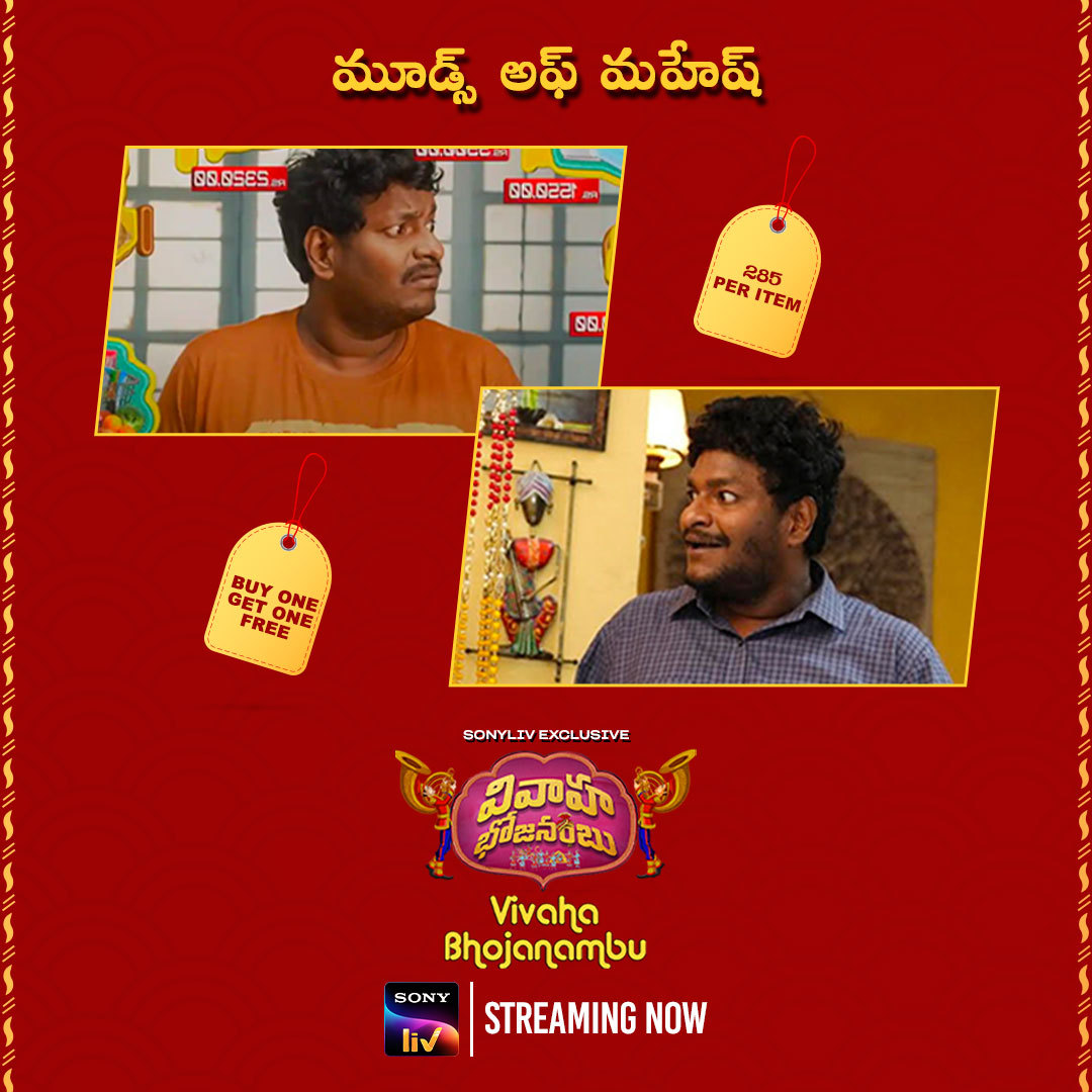 - Mahesh's mood differs according to what the price tag is 😂. Vivaha Bhojanambu, streaming...