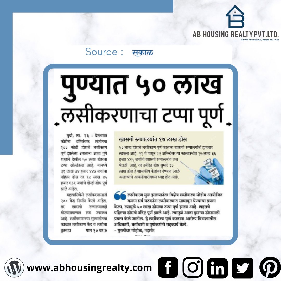 - 50 lakh vaccination completed in Pune. #abhousingrealtypvtltd #vaccination #covid #vaccine #coronavirus #vaccines #health #healthcare...