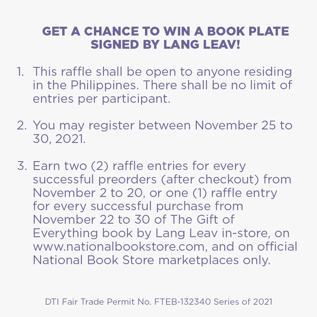 - Earn raffle entries with your purchase of The Gift of Everything from #NationalBookStore branches...
