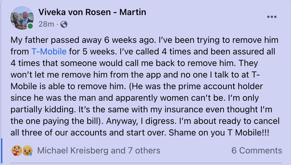| This is a really bad look @TMobile. As a former t-mo employee and long-time... Posted: 22 Dec 2021 09:26 AM PST This is a really bad look @TMobile. As a former t-mo employee and long-time customer, I'm very disappointed. Please help Viveka get this simple request resolved. It is not worth losing a customer over. @TMobileHelp @LinkedInExpert This posting includes an audio/video/photo media file: Download Now |