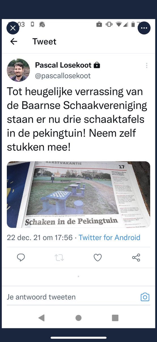 - .Baarn is inmiddels gemeente nummer 36 die schaaktafels plaatst in de openbare ruimte. #UrbanChess...