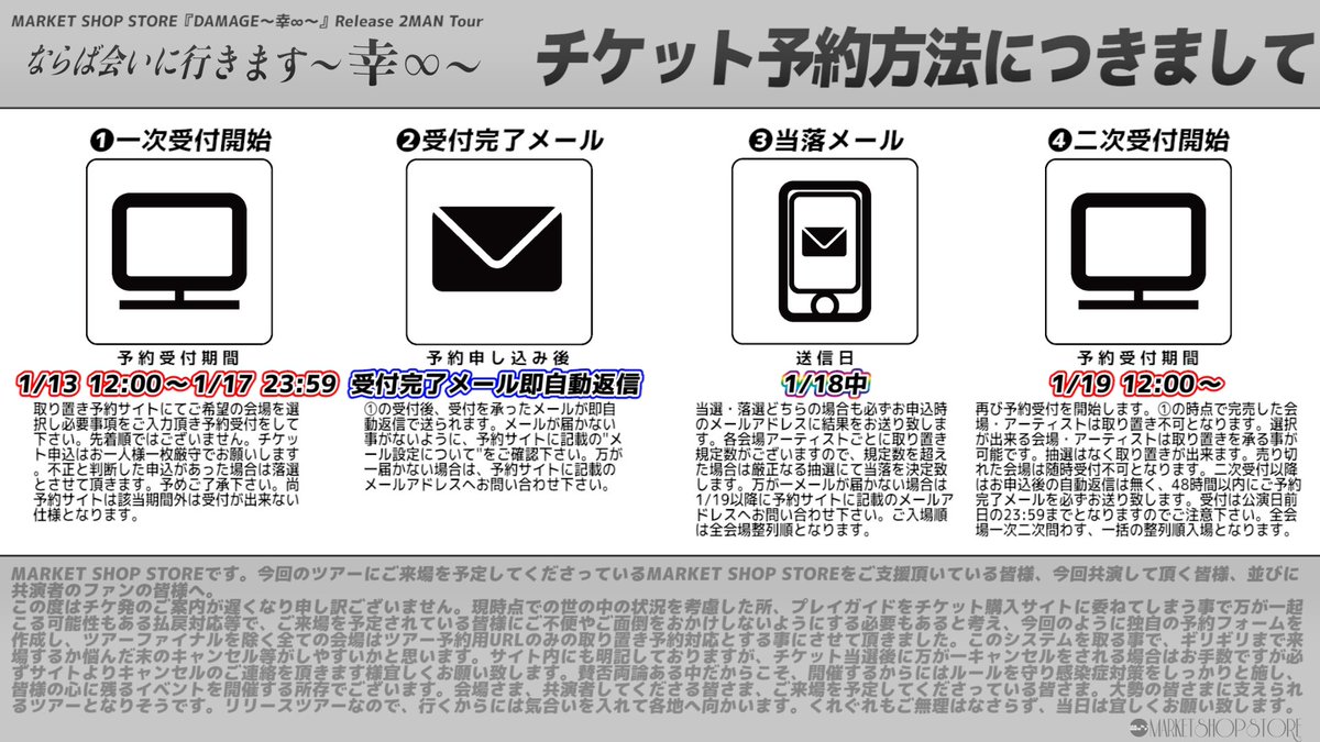 | Posted: 18 Jan 2021 04:31 AM PST ⚠️チケット当落メール送信済⚠️ ツアー全会場(FINALを除く)の一次受付のお申し込みを頂いた皆様全てに当落メールをお送り致しました。 引用内画像にも記載がございますが、届いていない方は予約サイト内記載アドレスにその旨のご連絡をお願い致します。明日12:00より二次受付(通常受付)が開始スタート! MARKET SHOP STORE #DAMAGE幸幸幸幸幸幸幸幸幸幸 : 『DAMAGE〜幸∞〜』Release 2MAN Tour"ならば会いに行きます〜幸∞〜" |