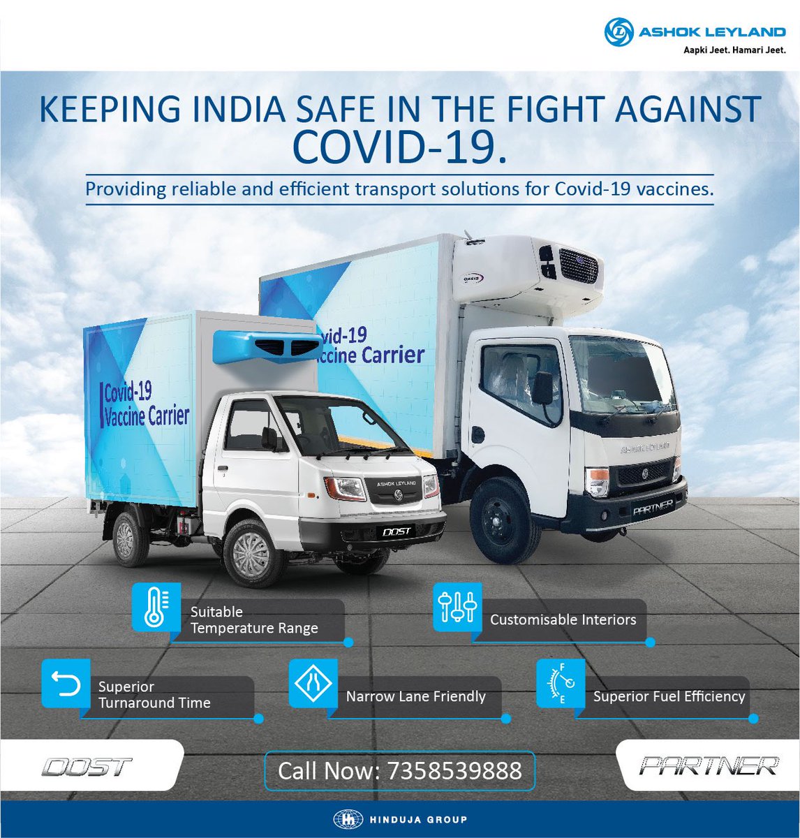 | Keeping India Safe in the Fight Against Covid-19. Presenting the Ashok Leyland DOST and... Posted: 18 Jan 2021 04:18 AM PST Keeping India Safe in the Fight Against Covid-19. Presenting the Ashok Leyland DOST and PARTNER Range of Light Commercial Vehicles–Ideal for last-mile connectivity and reaching the nooks and corners of the Country! Your Reliable & Efficient Transport Solution for Covid19 Vaccines This posting includes an audio/video/photo media file: Download Now |