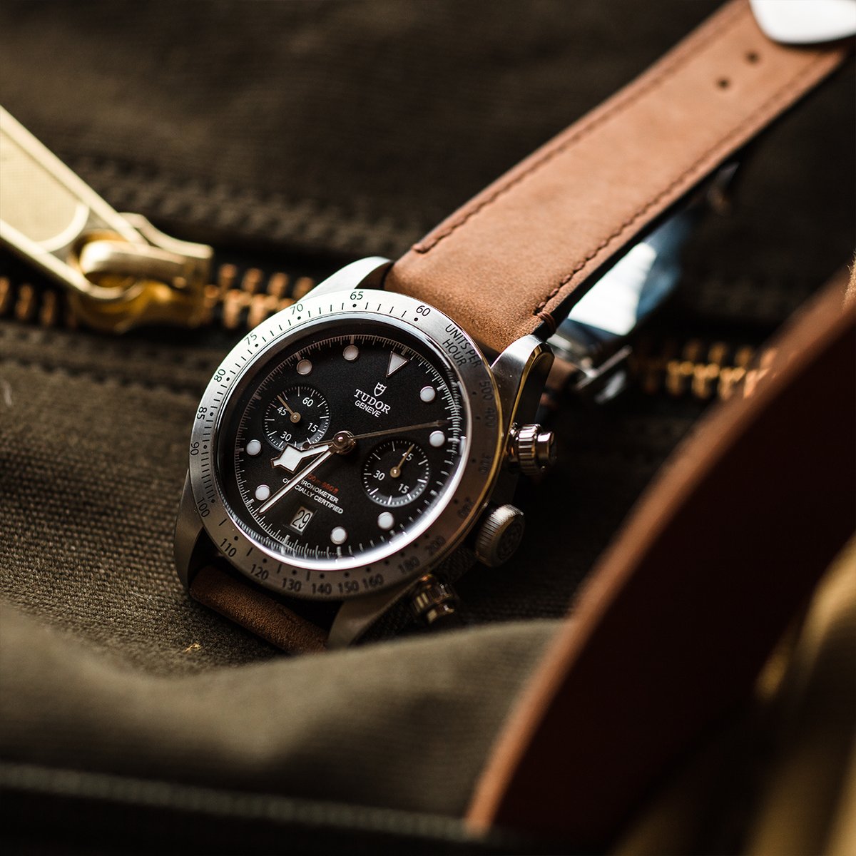 The motorsport and diving heritage of Tudor brought together in a purist's chronograph. The Tudor Black Bay Chrono. 41 mm steel case, column-wheel manufacture calibre.