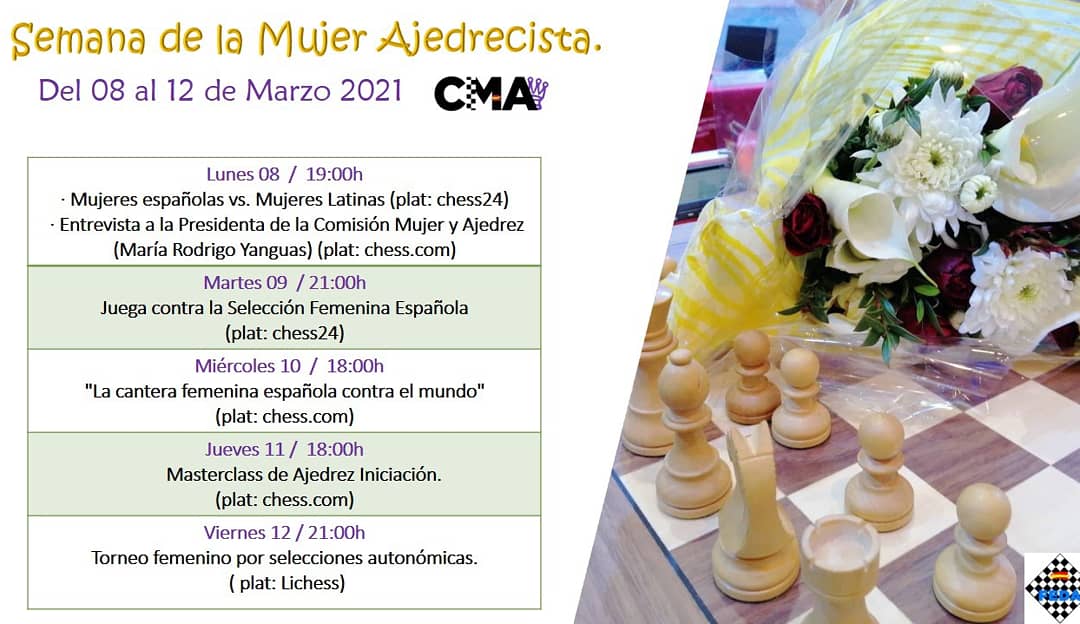 | 🌟 H O Y estaré impartiendo una clase de Ajedrez de Iniciación (18-20 horas... Posted: 11 Mar 2021 04:52 AM PST RT @mariary_psi 🌟 H O Y estaré impartiendo una clase de Ajedrez de Iniciación (18-20 horas 🇪🇦) junto con la Maestra Gabriela Varga (@kaissapy )en @chesscom_es 🤓 👉 Esta actividad se engloba dentro de la " Semana de la Mujer y Ajedrez" que hemos organizado desde la FEDA! This posting includes an audio/video/photo media file: Download Now |