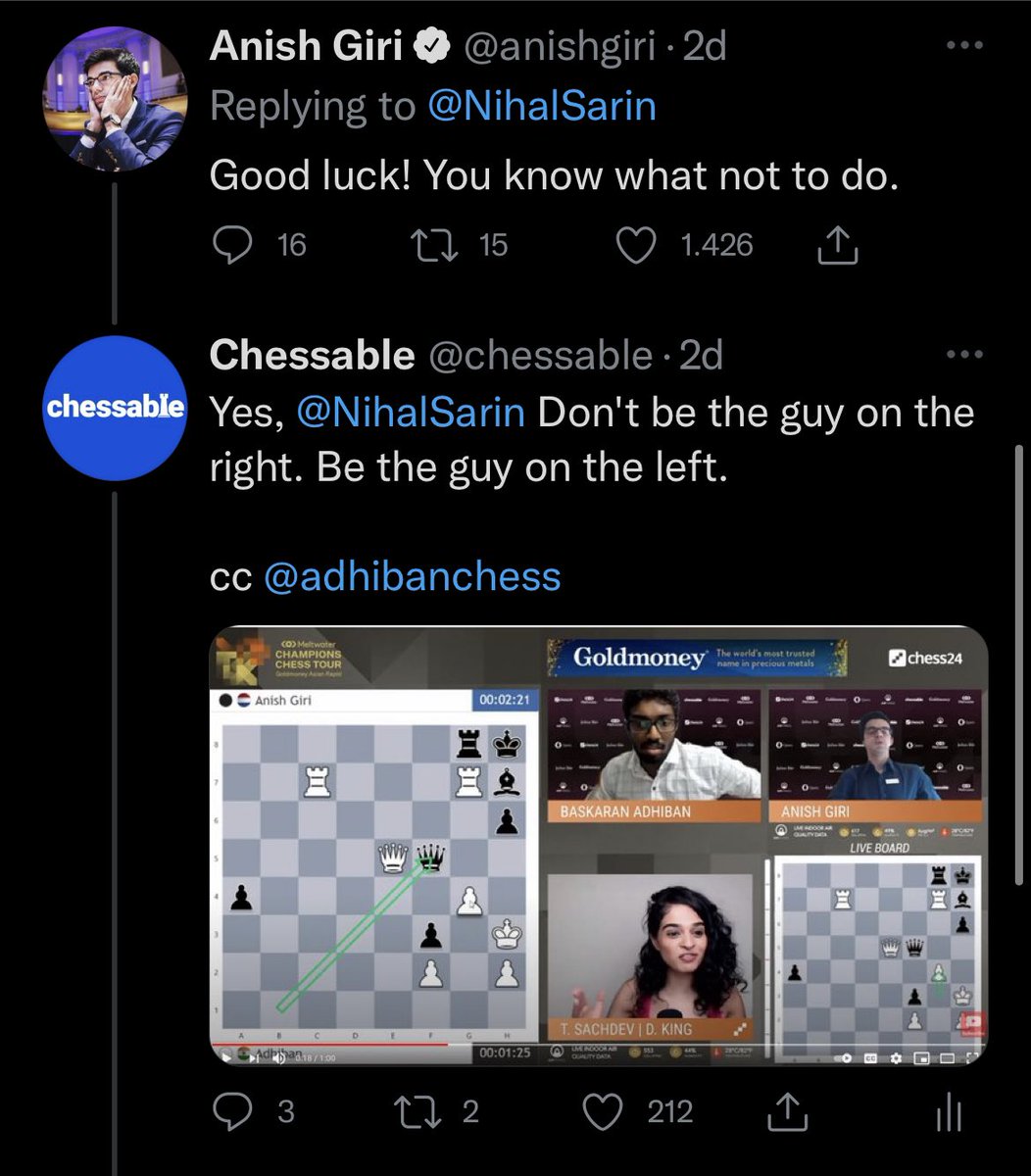 | When you win a game, but lose a mentor. Posted: 25 Jul 2021 05:16 AM PDT When you win a game, but lose a mentor. Chessable : This aged well @NihalSarin 🙌 |