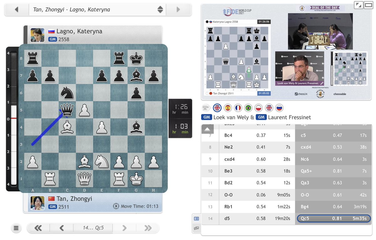 - Kateryna Lagno may be in some trouble in a hyper-sharp Grünfeld! chess24.com/en/watch/live-… #c24live #FIDEWorldCup