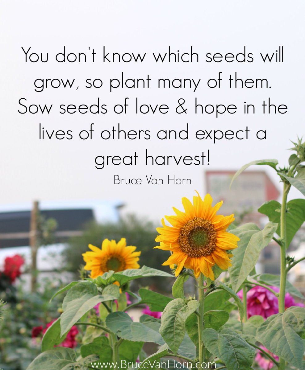 - You don't know which seeds will grow, so plant many of them. Sow seeds...