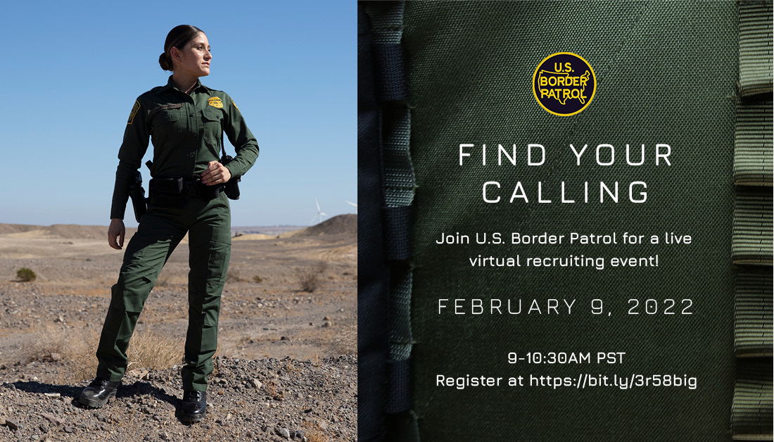 | Border Patrol Agents sit squarely on the front lines. They guard the US from... Posted: 04 Feb 2022 04:53 PM PST Border Patrol Agents sit squarely on the front lines. They guard the US from illegal activity & provide aid to those in need. It's mentally & physically challenging & requires courage & compassion. Join our live webinar 2/9, 9-10:30 am PST: bit.ly/3r58big #CBPCareers This posting includes an audio/video/photo media file: Download Now |