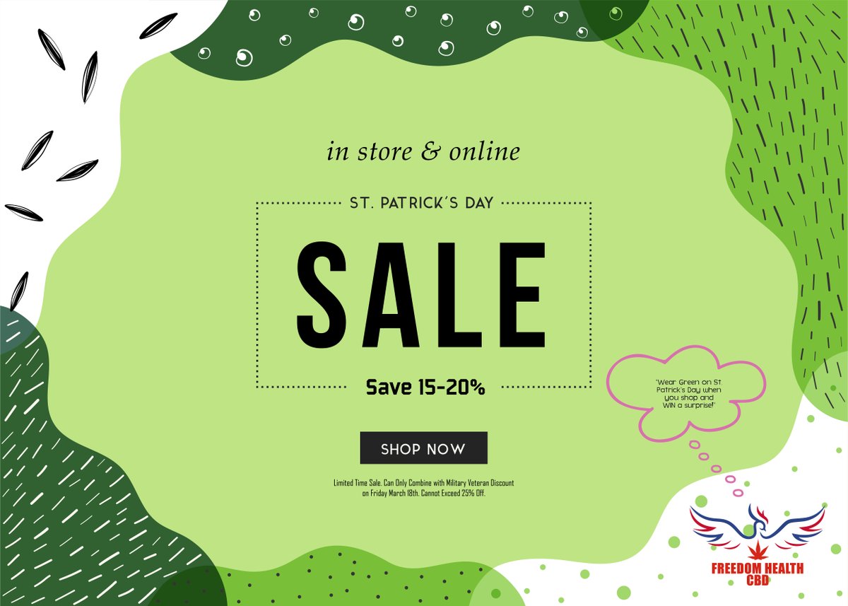 | Happy St. Patrick's Day!!! Stop on by today and save some green on the... Posted: 17 Mar 2022 06:00 AM PDT Happy St. Patrick's Day!!! Stop on by today and save some green on the big day! If you wear green, you will earn an additional 5% discount. Flat 15% Valid in-store and online. Use #promocode StPatrick15 online. FreedomHealthCBD.com #Cannabis #StPatricksDay #FreedomHealthCBD This posting includes an audio/video/photo media file: Download Now |