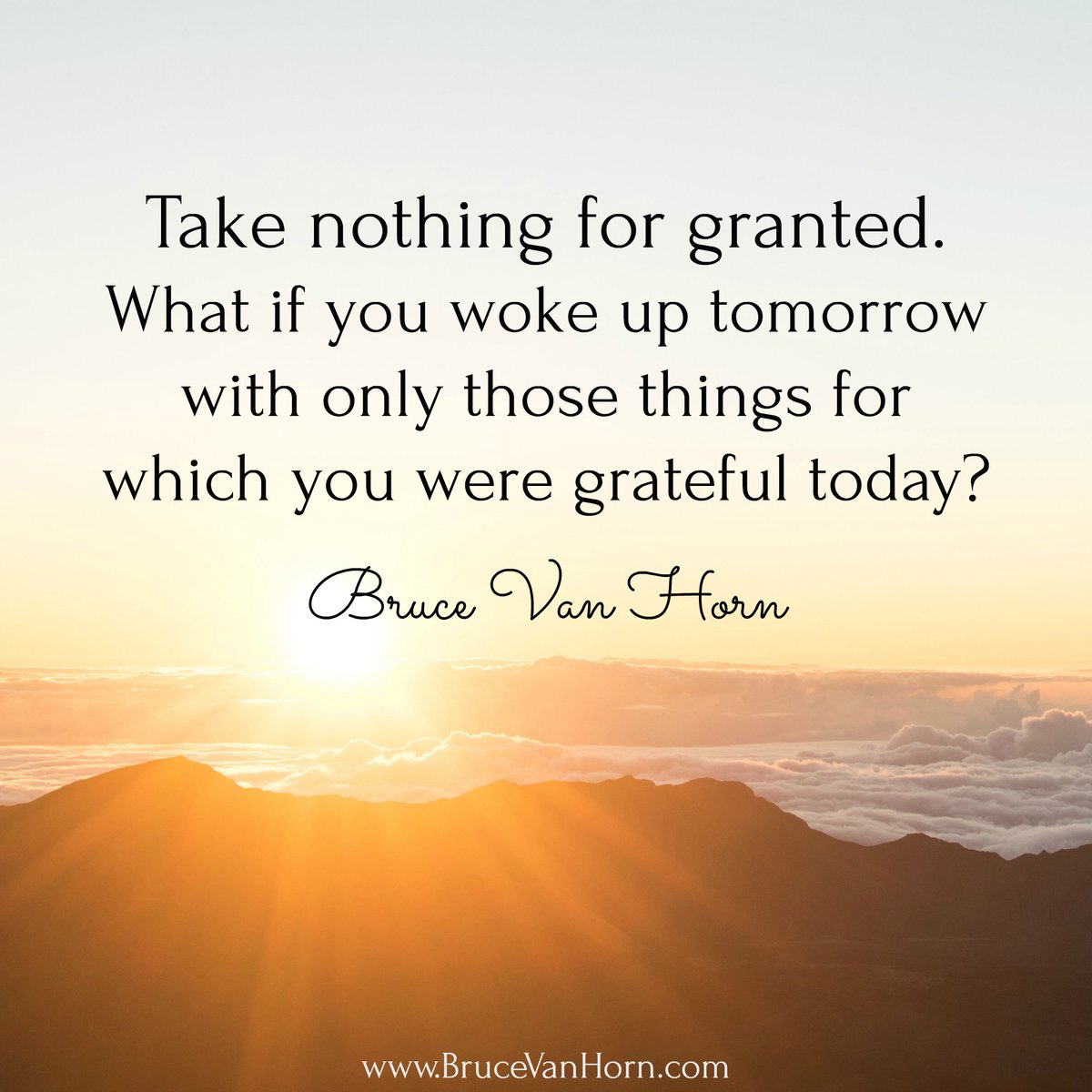 - Take nothing for granted. What if you woke up tomorrow with only those things...