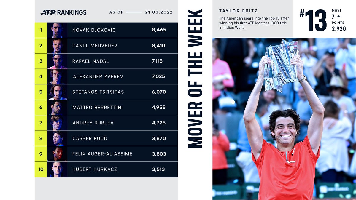 - Take a look at the #ATPRankings of the week 🙌 @taylor_fritz is the mover...