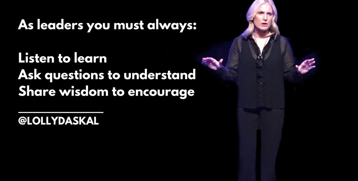 - As leaders you must always Listen to learn Ask questions to understand Share wisdom...