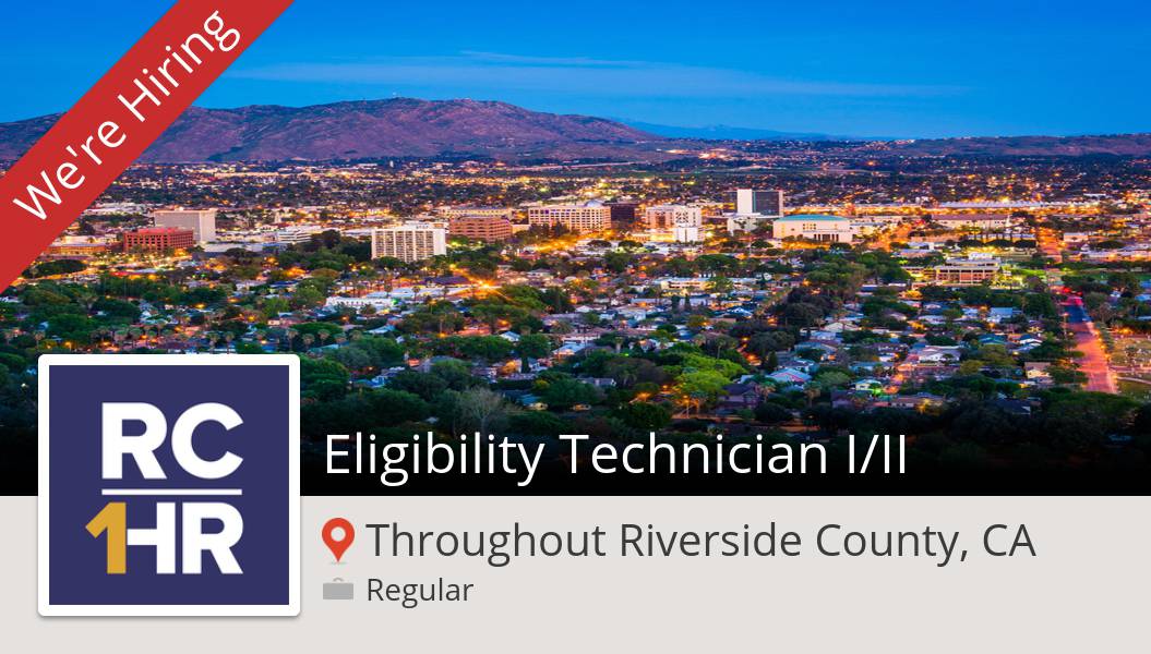 - New #job opening at #CountyofRiverside in #ThroughoutRiversideCountyCA! Eligibility #Technician I/II workfor.us/riversidecount… #RivCo1HR