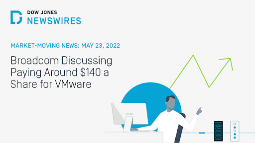 | Shares of VMware Inc. $VMW rose after #DowJones Newswires reported that the #technology company... Posted: 16 Jun 2022 07:03 AM PDT Shares of VMware Inc. $VMW rose after #DowJones Newswires reported that the #technology company Broadcom Inc. discussed paying $140 a share (or $60 billion) for the business. See the market activity on our blog: bit.ly/3MPkret This posting includes an audio/video/photo media file: Download Now |