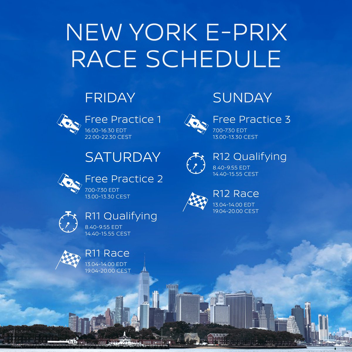 - The timings for everything happening this weekend! 👀 @Nissan @NissanUSA #NissanFormulaE #FeelElectric #NYCEPrix