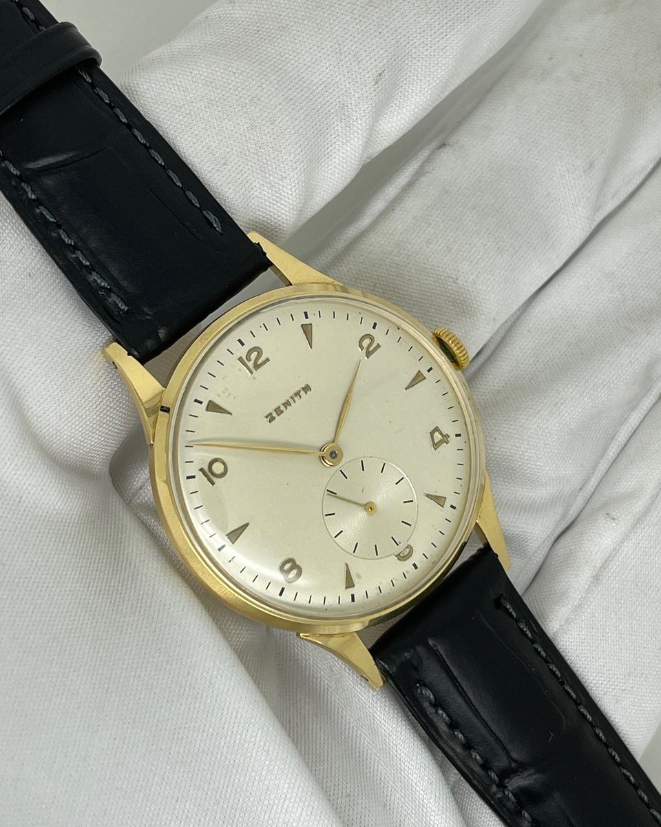 - 1949 Zenith manual wind. Solid 18ct gold case. Exquisite timepiece fully serviced with a...