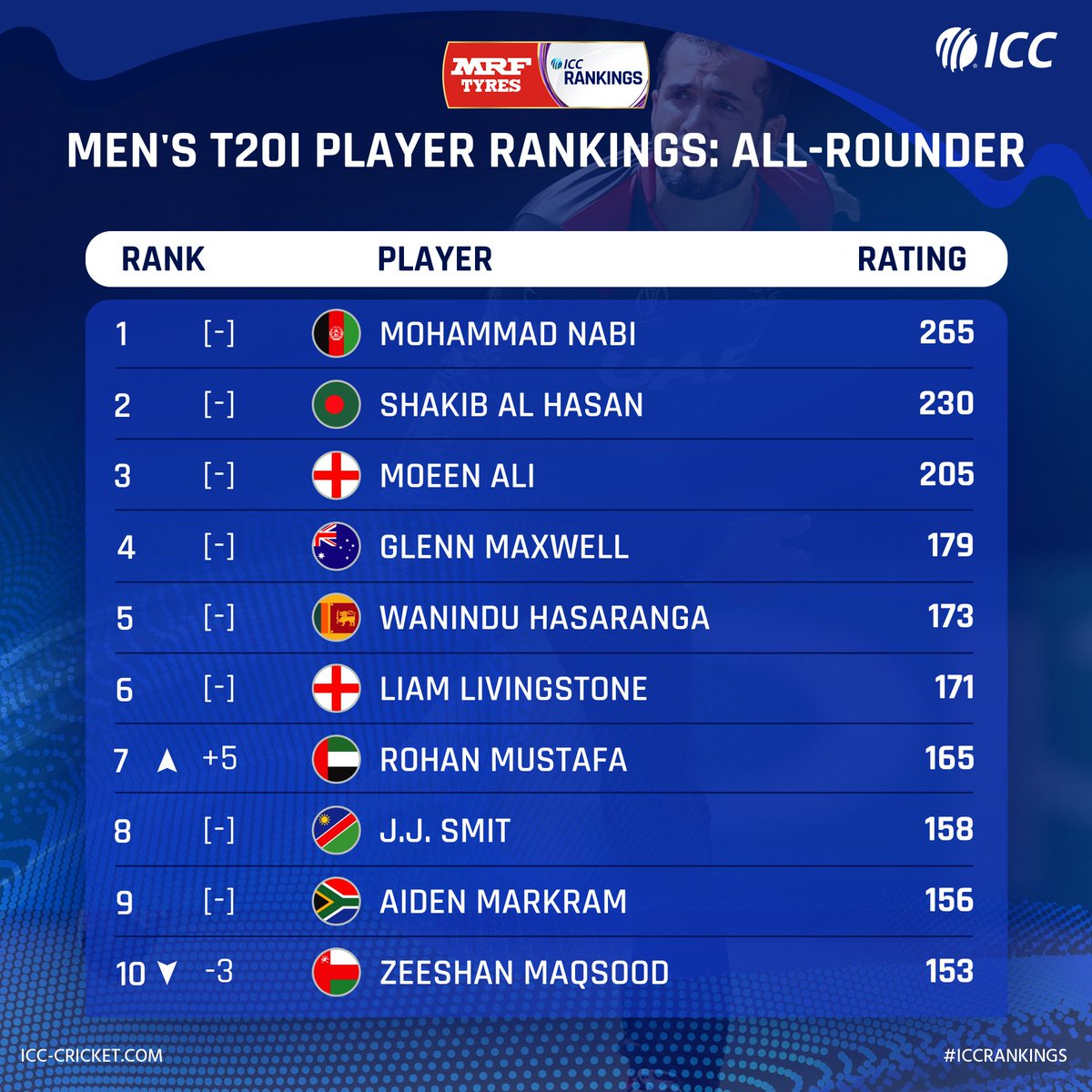 - 👑 New number one T20I bowler 🚀 Rohan Mustafa launches into the top-10 ⏫...