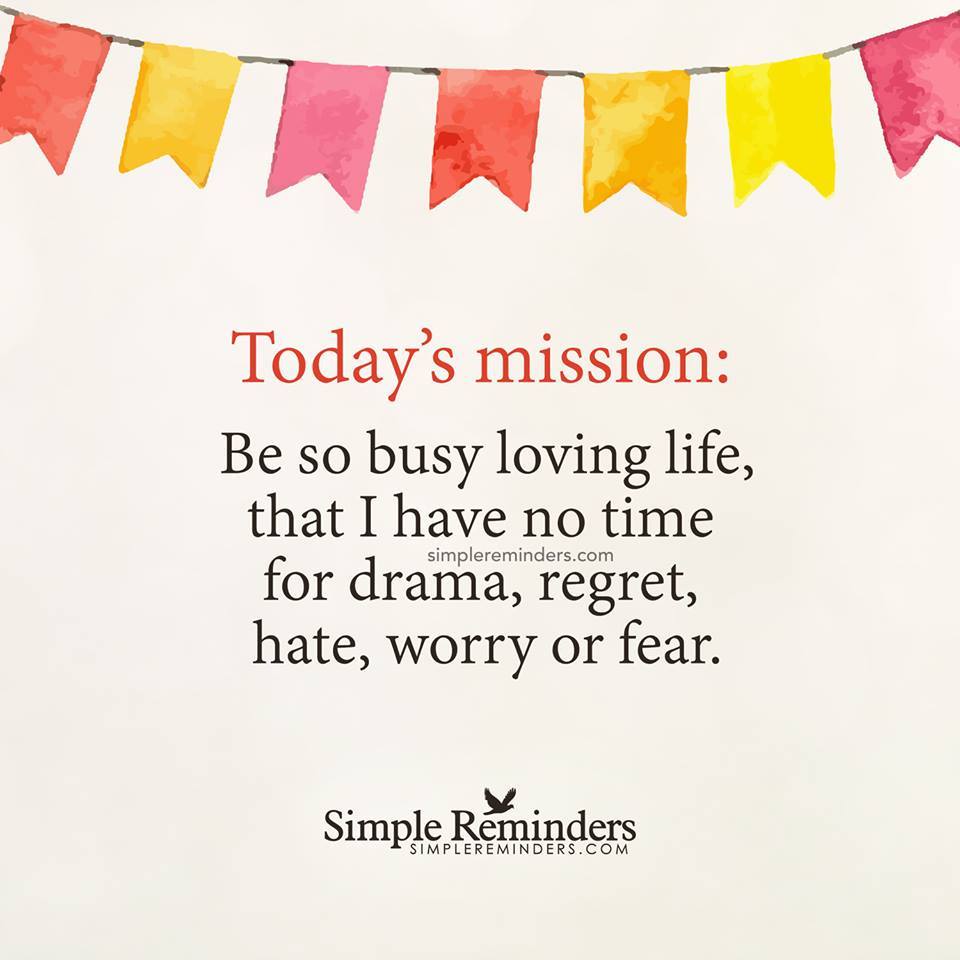 - Today's Mission: Be so busy loving life that you have no time for drama,...