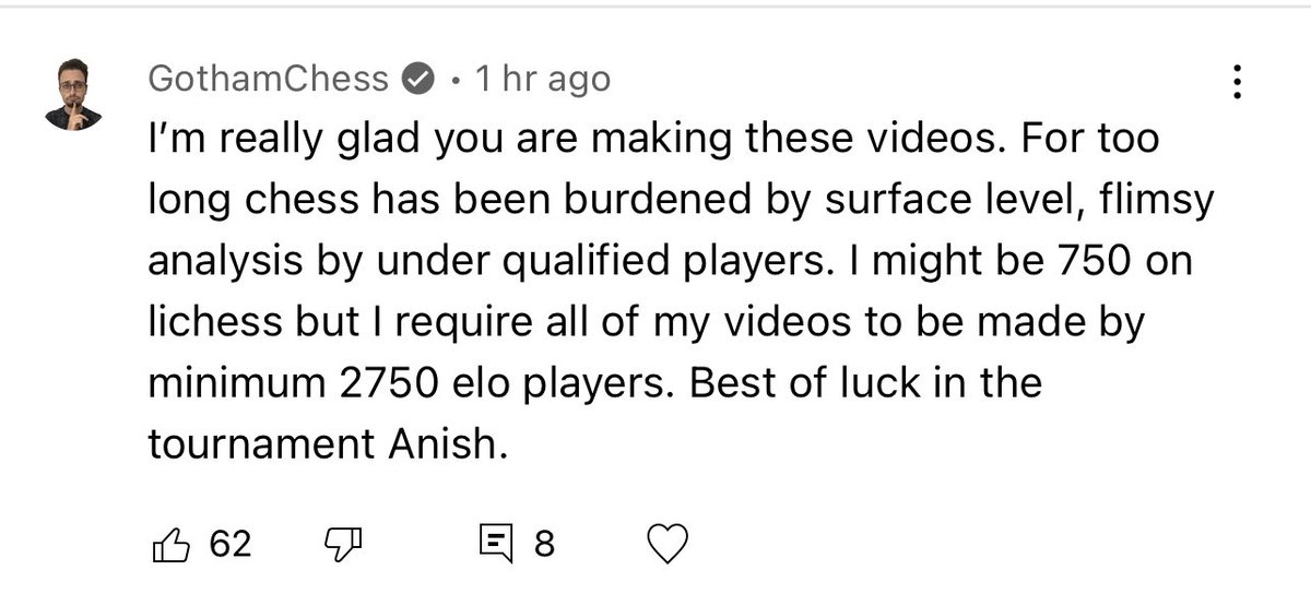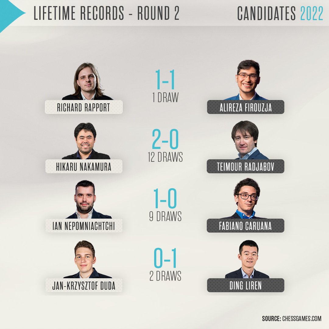| Round 2 of the #FIDECandidates kicks off in 30 minutes with the clash of... Posted: 18 Jun 2022 05:31 AM PDT Round 2 of the #FIDECandidates kicks off in 30 minutes with the clash of the early leaders, Ian Nepomniachtchi and Fabiano Caruana! Follow the action: youtube.com/watch?v=Rnm-17… |