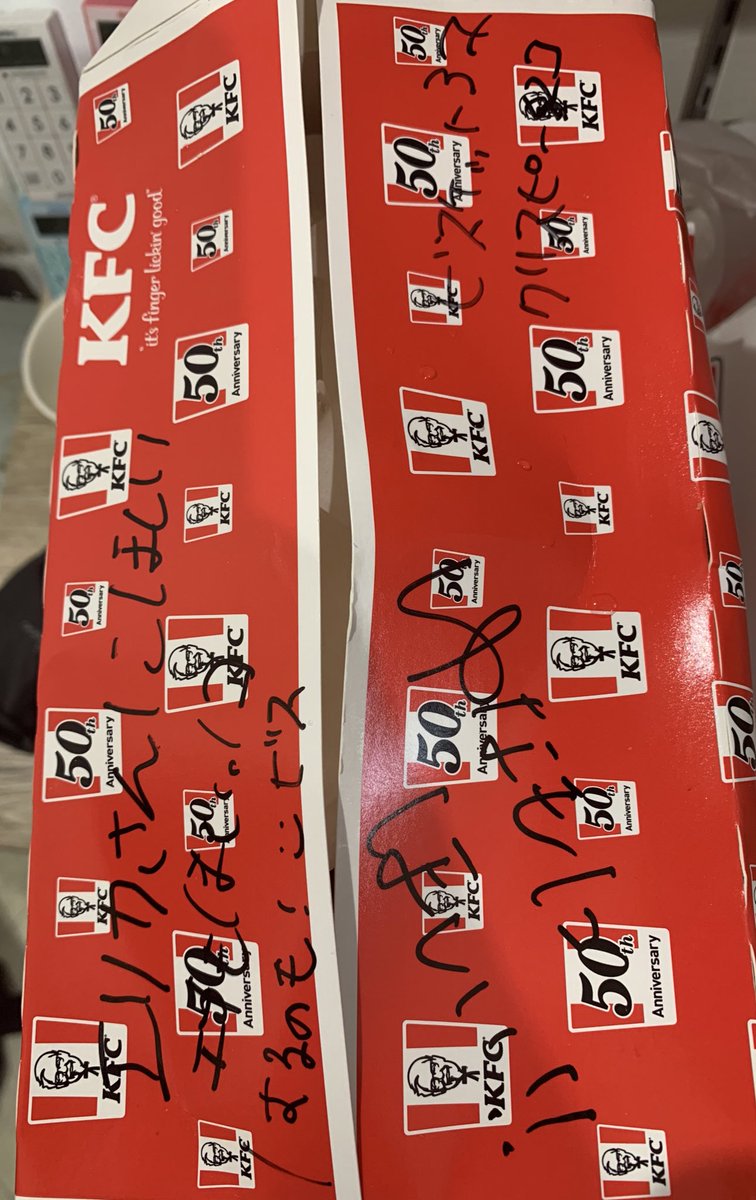 恵梨香店長が @erika_kenmotsu 「後輩たちに何かuber頼もうかなあ。」と呟いてたので「なにっ!そんなかっこいい役割渡してたまるか!!!😤」ということで僕からスタッフに大量のKFCをuberで注文〜🤣