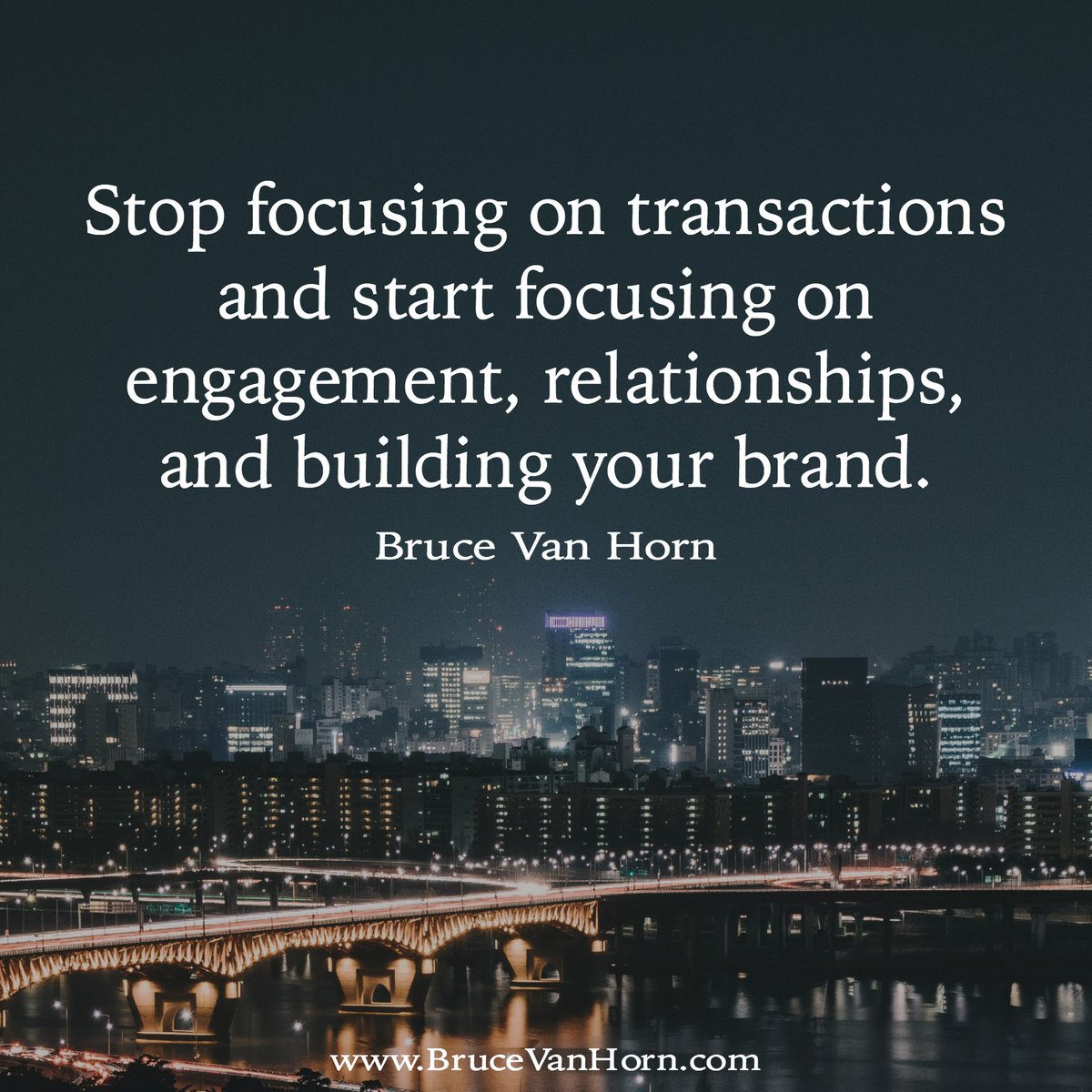- Stop focusing on transactions and start focusing on engagement, relationships, and building your brand....