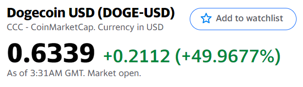 - One 5 / 5 / 2021 . Expecting #doge to a Dollar !